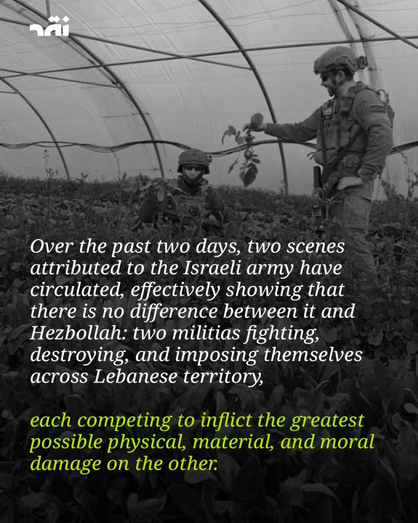 What the Israeli army has done over the past two days reflects one clear reality: it is nothing more than a militia—similar to Hezbollah—both acting with impunity in southern Lebanon and competing in inflicting harm.