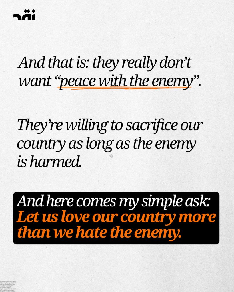 Perhaps the answer is simple…to love our country more than we hate our enemy.